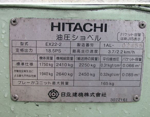 | Location, Registration and Inspection of Hitachi EX22-2 |