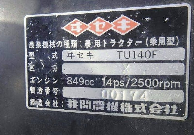 | Iseki Tractor TU140F general characteristics |