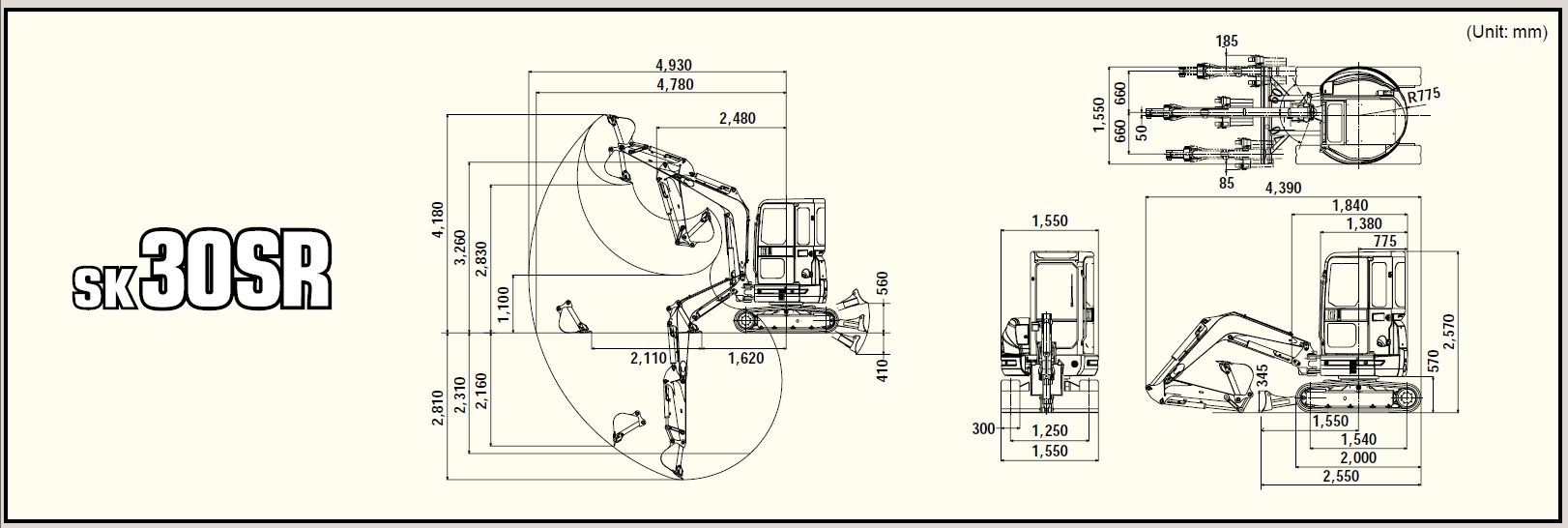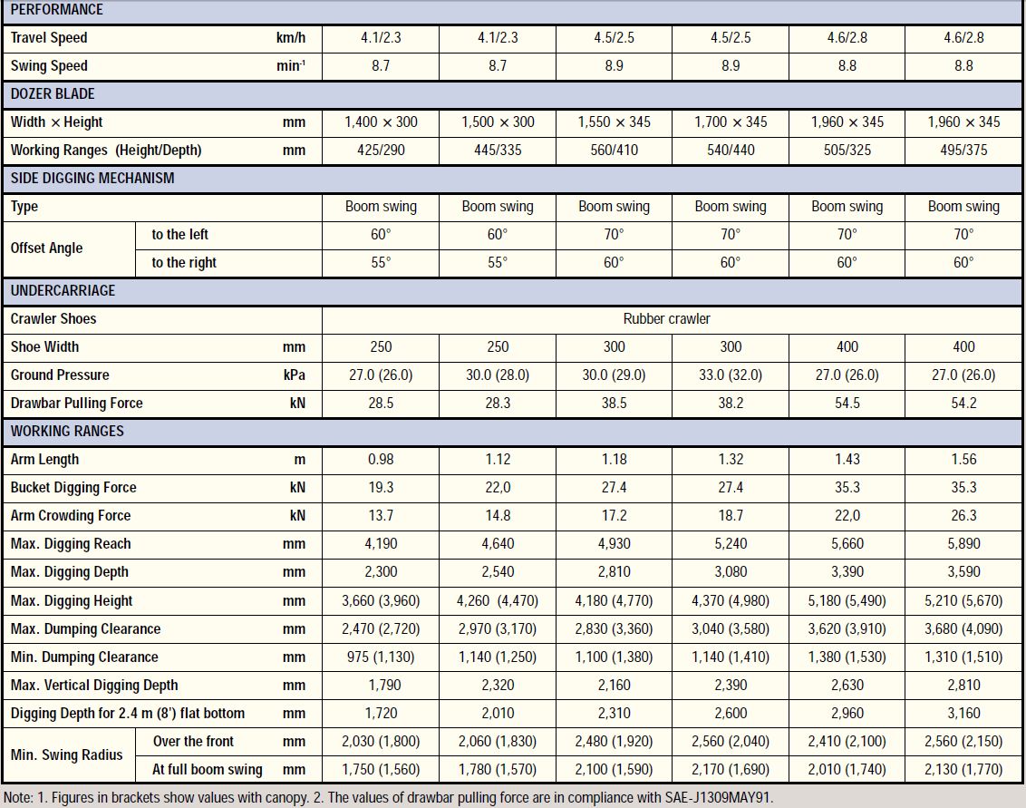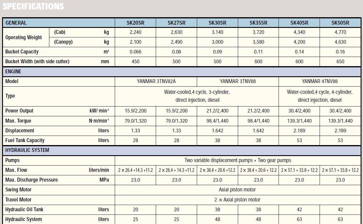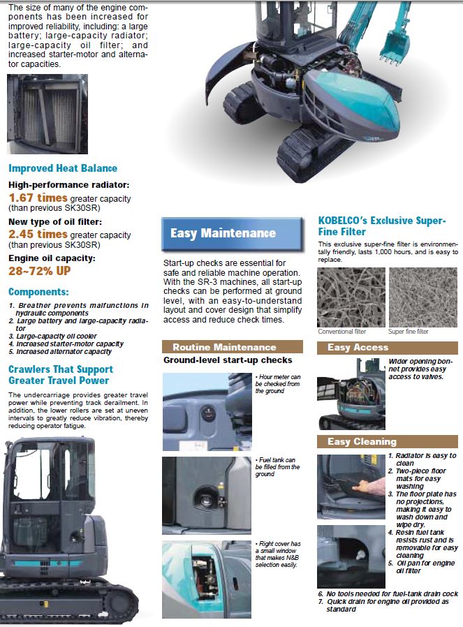 | Kobelco EXCAVATOR SK30SR general characteristics |